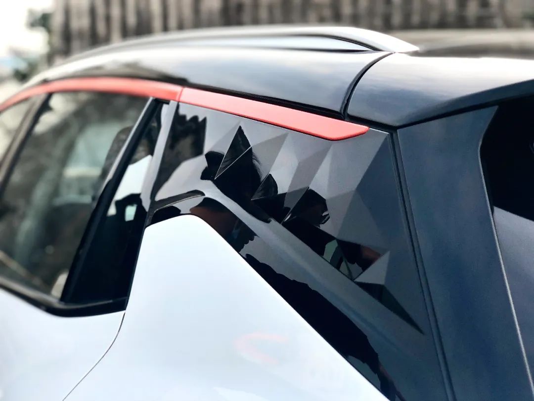在C柱上,还有菱形切割设计的饰板,与车内饰板纹理呼应,算是领克06上的一个主题元素。
