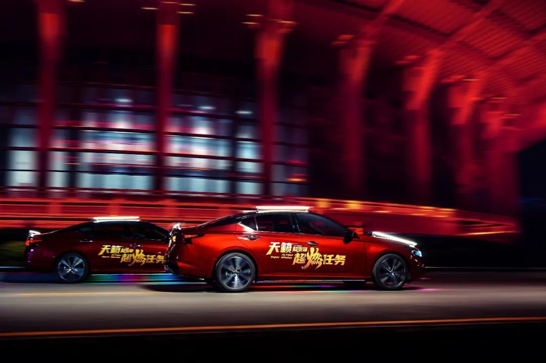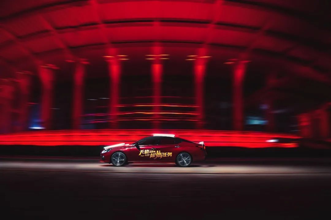 在挑战过程中,天籁的强劲实力得到充分体现。在绘制超级高铁部分时,天籁凭借中级车最强2.0T发动机之一的VC-TURBO超变擎大显身手,其拥有179kW最大功率、371N·m最大扭矩,百公里加速仅需6.42秒。在车手踩下油门的一刻,瞬间迸发出媲美V6发动机的澎湃动力,在短距离内充分加速,绘制出的高铁光影极富速度感和冲击力。