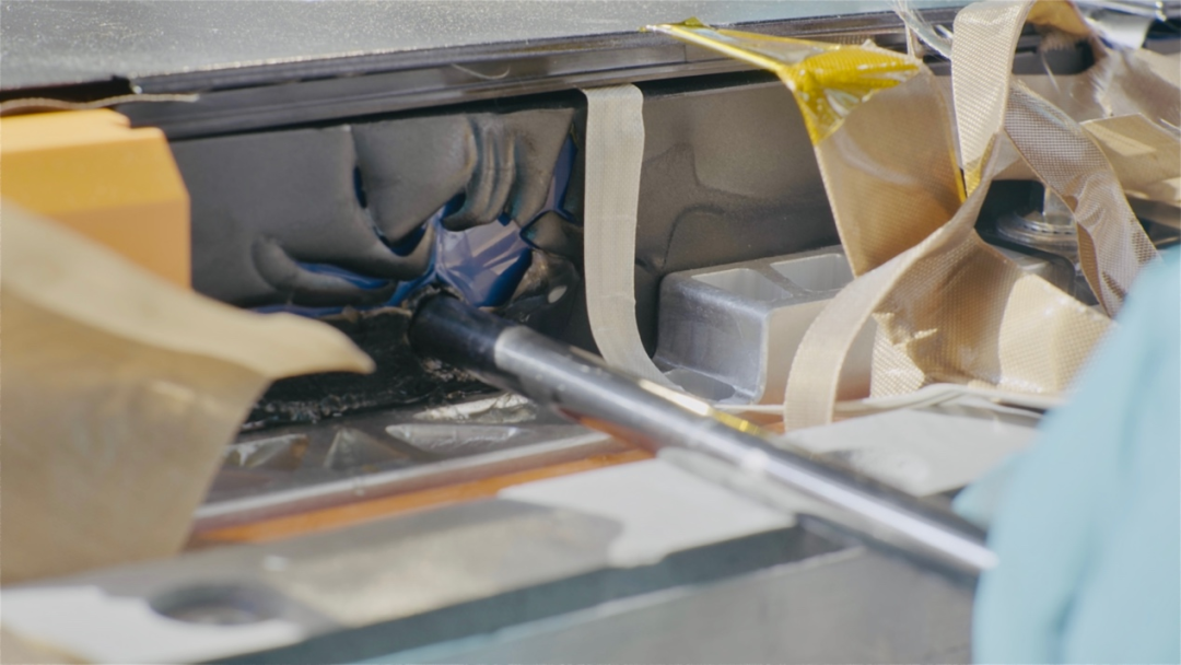 试验结果显示,磷酸铁锂(普通电池)整包在钢针刺入电芯触发热失控后,出现了电压下降、温度上升现象,最高温度为329.4℃,且出现冒烟现象,持续16分钟;而磷酸铁锂(弹匣电池)整包被刺后,最高温度仅为51.1℃,静止48小时后,单体电压降至0V,温度降为室温,且无冒烟、无起火和爆炸现象,电池包状态稳定。打开电池系统外壳,其内部结构完好。