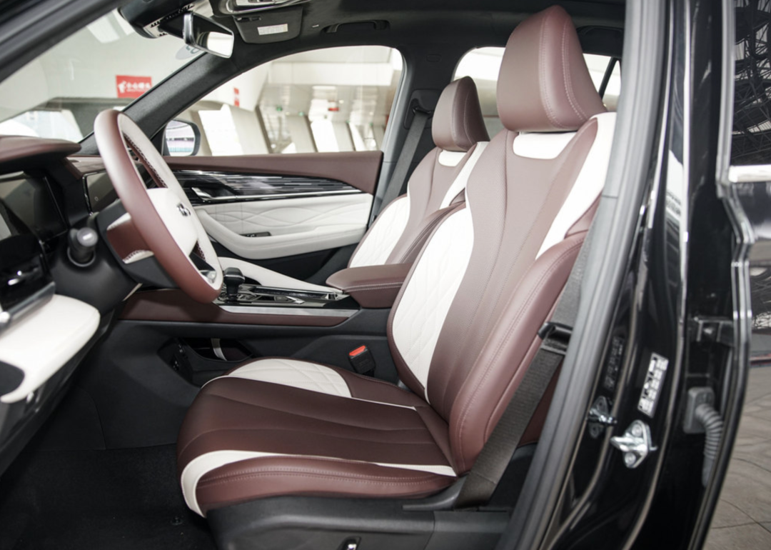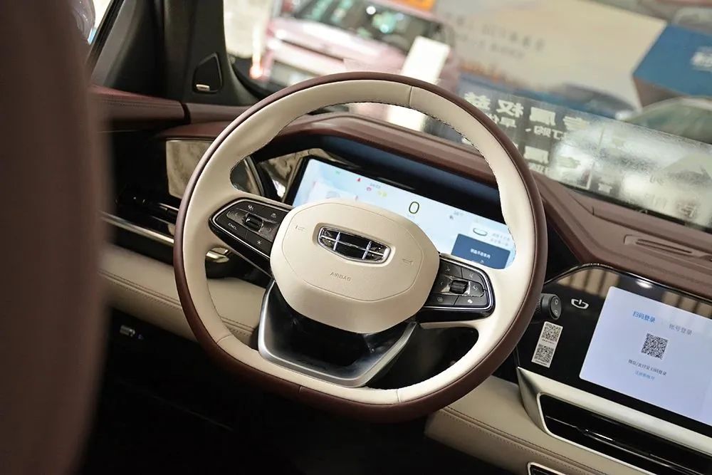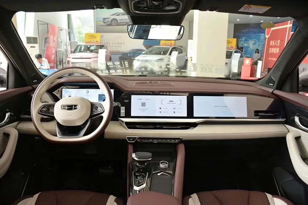打开车门走进车内的话,会发现星越L采用了与现有吉利截然不同的设计风格,采用了大量的皮革、软性搪塑、钢琴烤漆以及镀铬等装饰,并且整体做工更是十分精致。