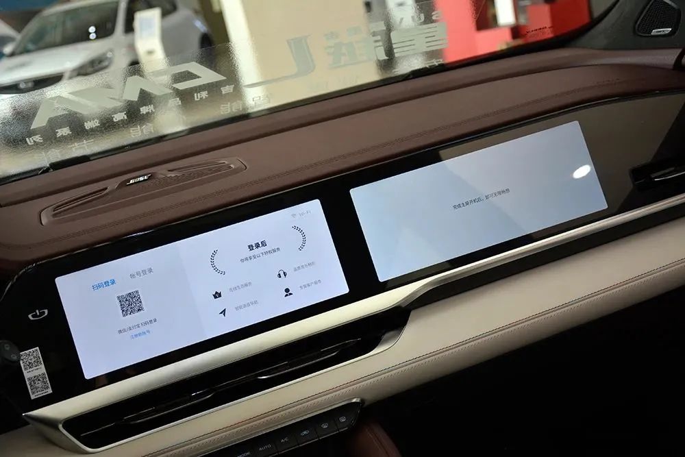星越L搭载了一款号称是“IMAX屏”的中控屏幕,是由主驾驶的液晶仪表与中间的车机屏幕以及副驾驶前方的娱乐屏共同组成,科技感拉满。