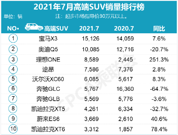 芯片慌已经广泛波及到BBA主力车型,销量榜单上有集中的体现,更为严重的是,部分急着用车的潜在BBA消费力,在优惠缩小、提车时间待定的情况下,转向投入其他豪华品牌的怀抱,短期间接“助长”了沃尔沃、凯迪拉克等二线豪华品牌的销情,比如沃尔沃S90 7月销量上涨11.1%、凯迪拉克XT6 上涨78.4%,而理想ONE更同比疯涨251.3%。