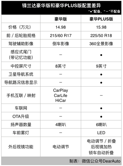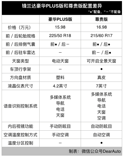先来看看豪华版和豪华PLUS版的区别:
