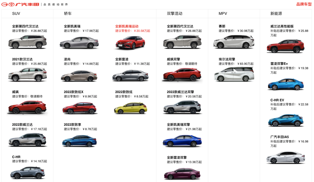 在锋兰达上市之前,广汽丰田旗下确实缺少一款像本田缤智、日产逍客那样的小型家用SUV产品。