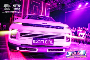 吉利华南定制版 ICON Girl版自带樱花粉贴膜设计。 车企供图
