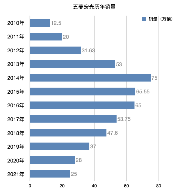 自2010年9月上市开始,五菱宏光的销量节节攀升,2014年达到巅峰时期,此后,神车光环逐渐褪去。