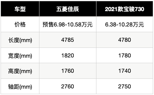 五菱佳辰和宝骏730的车身尺寸接近,该车也被称为宝骏730的继任者。