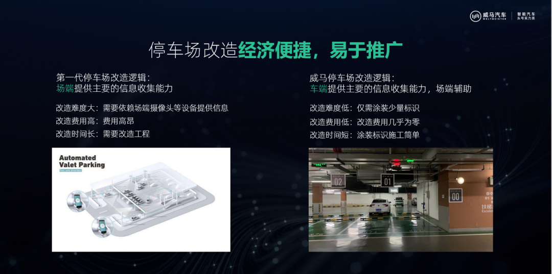 威马PAVP很像奔驰S级搭载的AVP系统,它们都能在某些公共停车场中做到无人自主泊车,但能够支持S级的停车场需要深度改造,比如安装包括高清摄像头在内的大量设备,改造难度较大、成本也比较高,不便于大范围推广。但威马W6自身的智能化硬件水平也不差,传感器有着高感知能力,因此停车场只需做一些简单的标识设计就能完成匹配需求,比起大量的高清摄像头和传感器而言,这样的匹配升级费用几乎为0。