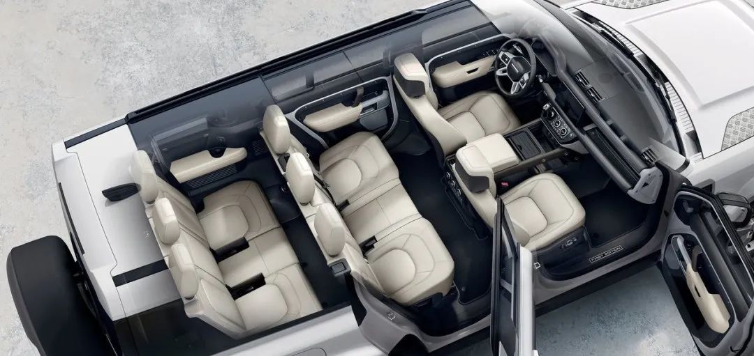 据路虎官方表示,卫士130新增的第三排座椅可以舒适地坐下成年人。从官图上看,它的第二、第三排腿部空间的确是相当宽敞的,目测和奔驰GLS、宝马X7等大型SUV都不相上下了。