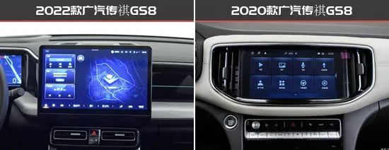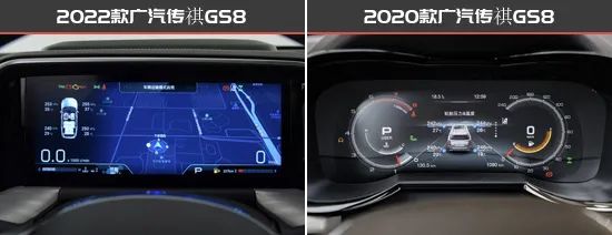 虽然新老款车型都采用了全液晶仪表,但新款传祺GS8的整体显示效果相比老款车型更加炫酷。外观采用了纯平设计,相比老款车型内嵌式设计在可视化方面要更加直接。新款车型的中控屏采用了悬浮式设计,且屏幕尺寸较老款车型也增大不少。更重要的是,老款车型中控屏下方的实体按键在新款车型上已消失不见,各项功能操作全部移植到了中控屏内。此外,新款车型内部搭载的ADiGO智驾互联生态系统也升级到了4.0版本,除了可支持导航、OTA升级、语音交互、车联网等功能外,还加入了多种应用商店以及小程序。