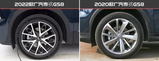 新老款传祺GS8侧面造型虽然都很方正,但新款车型采用的“光塑曲面”车身造型比老款车型更加复杂,平直的线条与曲面搭配起来更有立体感。在车身尺寸方面,新款车型较老款车型有了明显提升,特别是车身长度和轴距,可以说完胜老款车型。新老款车型轮圈样式也有了改变,新款车型的双色花瓣式轮圈,相比老款车型的多辐式轮圈造型更加时尚,且轮胎尺寸也有所增加。