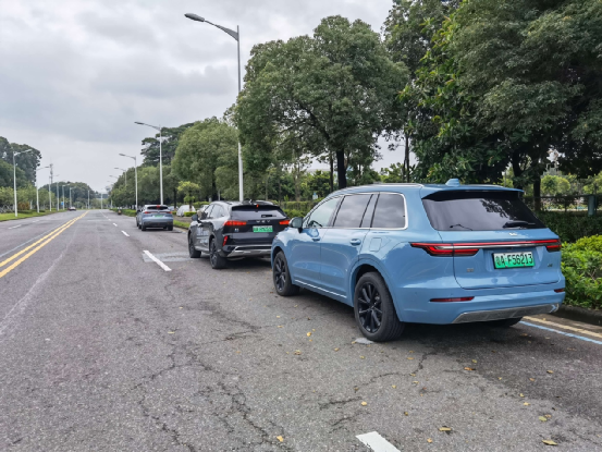 由于这三台车NEDC综合续航里程都超过了1000km,在较短的时间内我们也没有办法将油全部耗尽来计算续航里程。所以我们选取了在广州大学城外环线行驶两圈约30km,三台车清空小里程编队行驶,采用60km/h的速度、同样的路况和同样的空调设置,看看在相同的行驶环境下三台车的表现如何。