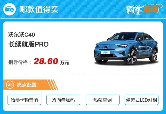 首先要了解全系都有的基础配置如何,才能明白多花预算买高配值不值。沃尔沃C40入门的长续航版的价格已经达到了26.70万,并不便宜的价格对应下的基础配置算是比较全面的,能够让人满意。包括齐全的辅助驾驶功能、全车无钥匙进入、电动后尾门、12.3英寸液晶仪表+9英寸中控屏、前排座椅加热、驾驶位座椅记忆、前排手机无线充电等都有,对于满足日常没有问题。真要是预算有限,选这款也够用。我的观点是既然选择了豪华品牌,不来一些豪华享受肯定心里有落差,所以不妨看看长续航版PRO。