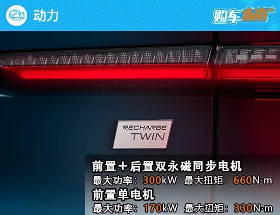 动力层面,沃尔沃C40中低配车型搭载前置单电机,最大功率170kW,峰值扭矩330N·m,使用69kWh三元锂电池组,能实现550km CLTC续航;顶配车型为前后双电机布置,综合功率300kW,峰值扭矩660N·m,百公里加速为4.7秒,配78kWh电池组,能实现530km CLTC续航。