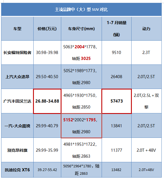 先是第四代燃油版汉兰达上市,然后新款大众途昂和福特探险者同一天公布售价,而另一边主打大五座的一汽-大众揽巡又跃跃欲试,和7座的揽境一起形成夹击中大型SUV市场的布局。
