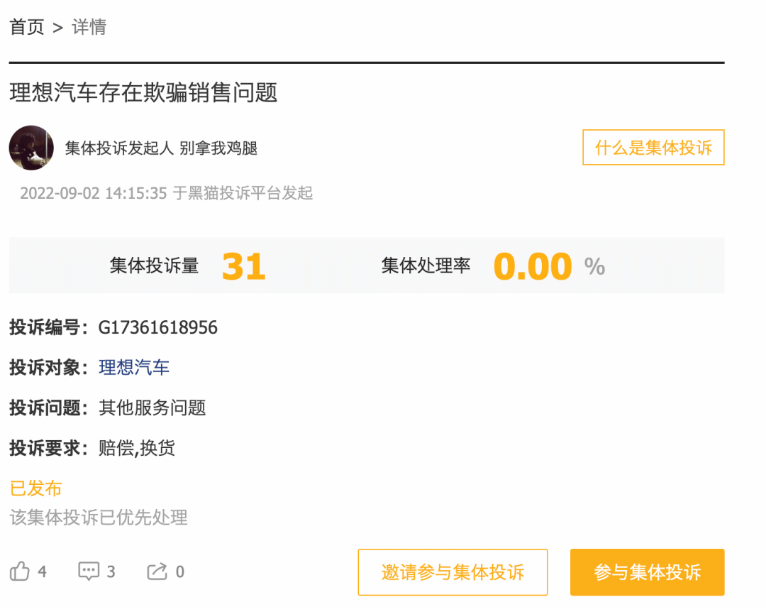 有车主表示,自己在今年6月时订购了一台理想ONE汽车,当时售价是34.98万元。在订购之时,销售、汽车生产商均未提及与理想ONE车型升级换代、停产和优惠降价等相关事宜。该车主于同月完成提车,但在9月1日理想汽车公布理想ONE将升级换代停产,并优惠2万元销售,因此该车主认为理想汽车的这种行为存在欺骗、虚假宣传等方面的问题。