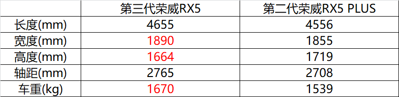 动力更强可以理解,为何说车轻快?数据显示,第三代荣威RX5比第二代荣威RX5 PLUS更重。