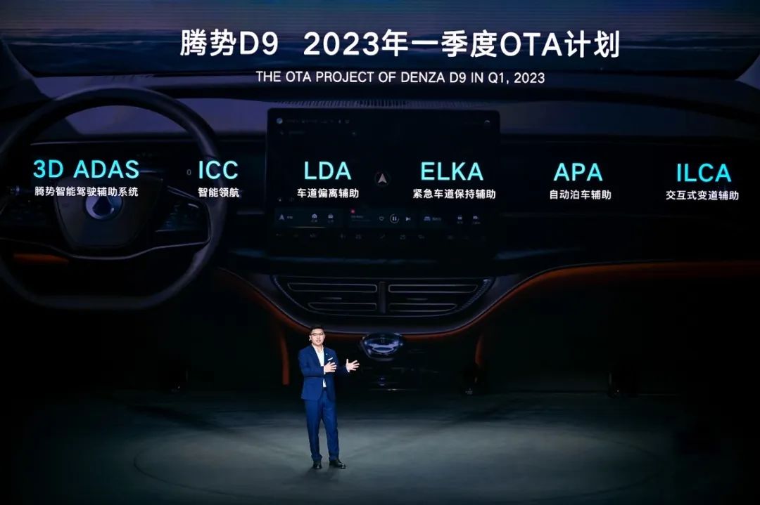 腾势D9已经一炮走红,但腾势并没有就此停下。赵长江透露,腾势D9还将在今年一季度进行首次OTA升级,包括3D ADAS、智能巡航控制ICC、车道偏离辅助LDA、紧急车道保持辅助ELKA、自动泊车辅助APA、交互式变道辅助ILCA等功能,也将在这次升级中体现。