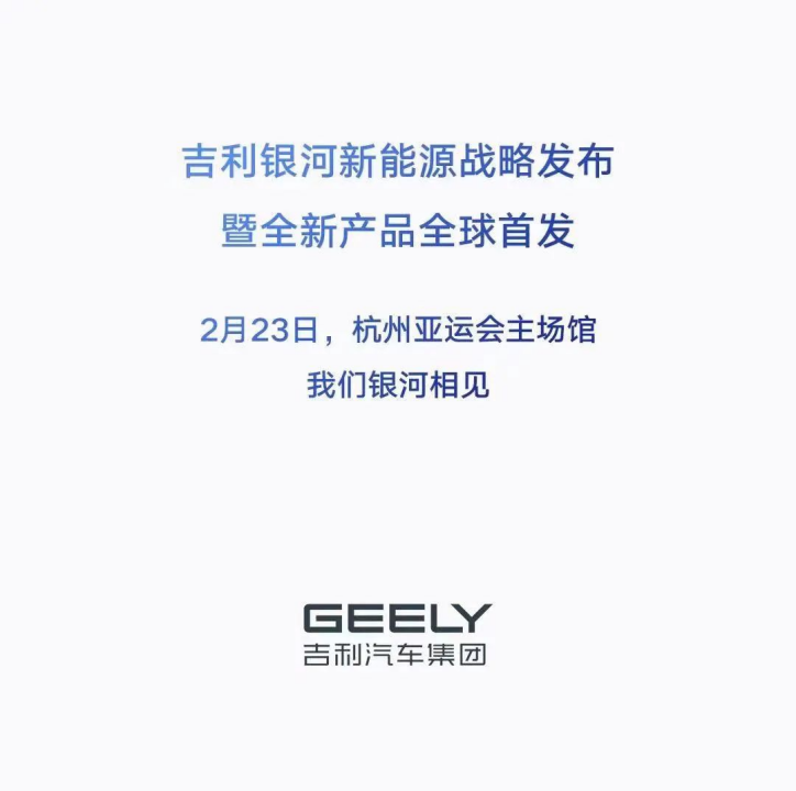 2月23日,吉利银河新能源战略将在杭州亚运场馆全球首发,现场也将带来银河系列的全新车型。