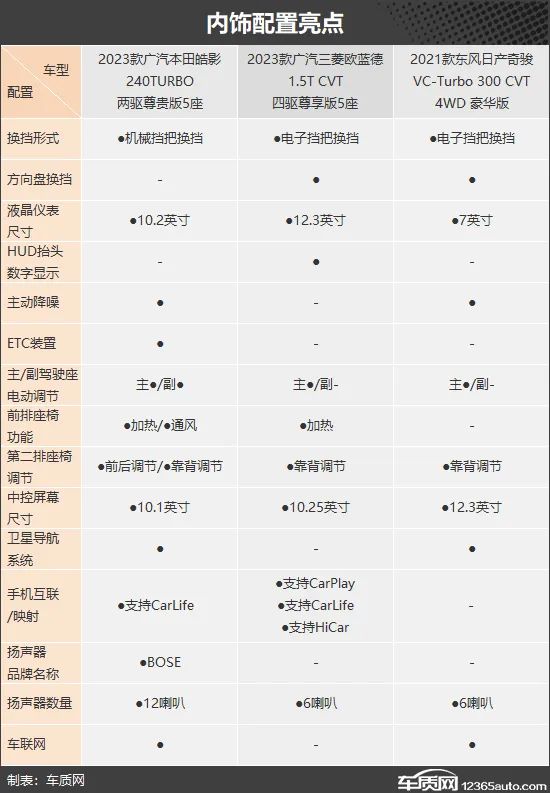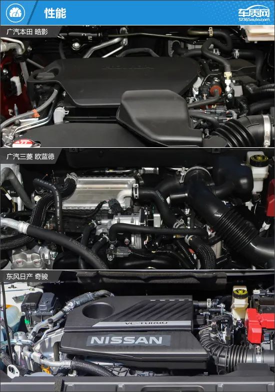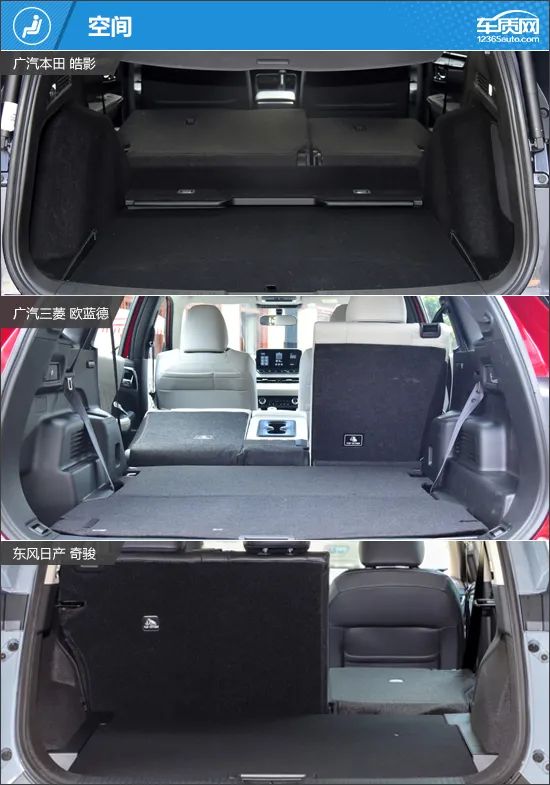 在内饰配置方面,本田皓影除了拥有不错的舒适性及多媒体配置以外,还独享ETC装置、车联网以及BOSE扬声器这几项锦上添花的配置,综合表现在三者中占优。三菱欧蓝德则独享了HUD抬头显示,液晶仪表盘尺寸也为三车中最大,另外还支持更多的手机互联功能,这样的表现可能更受年轻人的偏爱。而日产奇骏的表现稍微有一点点薄弱,但整体看差距并不算大。