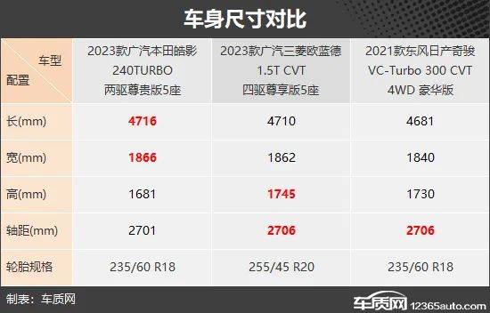 动力方面,表格里的这三款日系SUV对比车型都搭载了1.5L涡轮增压发动机,匹配CVT无级变速箱。其中,三菱欧蓝德的最大功率数据表现最为突出;日产奇骏的最大扭矩数据优势明显。而上述这两者的CVT无级变速箱也都可以模拟出8个挡位,可以有更棒的驾驶乐趣。相比之下,本田皓影的数据表现中规中矩。