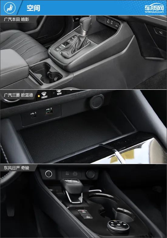 储物空间方面,三者的表现均不错,该有的实用储物槽和水杯槽都有配备,并且它们的位置和布局都十分的合理,无论是驾驶者还是乘坐者,都可以非常便利地进行使用。