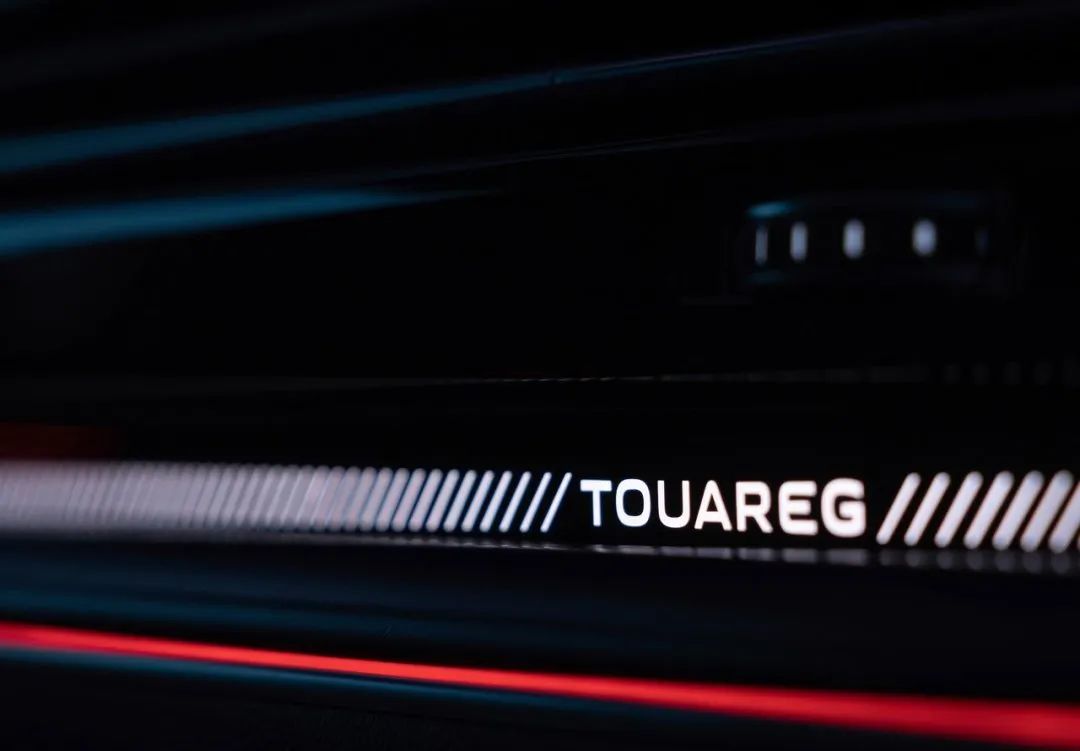 但在副驾驶前方,新款途锐增加了面板式的氛围灯,并带有“TOUAREG”途锐英文名称,以此强调车型定位。