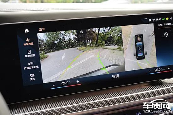 测试车型配备了360度全景影像和倒车车侧预警系统,并能够自由切换平面和立体视角,可以非常直观地观察到车辆所处位置、前后方以及两侧范围内的周边景象,同时还带有倒车辅助线,日常泊车便利。另外,影像清晰度以及镜头畸变控制都能让人满意,实用性出色。