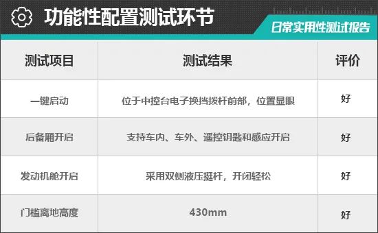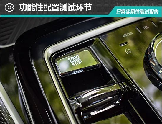 测试车型一键启动按键位于中控台电子换挡拨杆前部,质感突出,位置顺手,日常使用便捷。