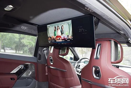 测试车型的后排搭载了一块31.3英寸超宽触控液晶屏,支持在线影音娱乐功能,还可以调整屏幕距离、倾斜角度以及画面比例,以达到最佳的观赏效果。实际体验也非常出色,将后排右侧座椅调整成半躺模式,观赏着前方31.3英寸大屏播放的影视节目,享受感十足。