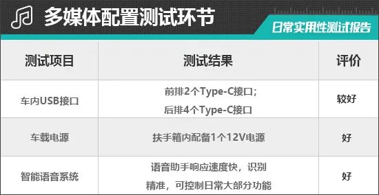 车载USB接口及车载电源方面,实测车型共配备了6个Type-C接口(前排2个、后排4个),虽然数量上较老款车型有所提升,但兼容性略显不足。