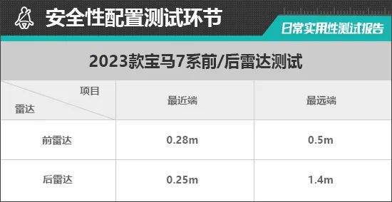前驻车雷达最远可在0.5m处感应前方物体,持续蜂鸣阶段最远距离为0.28m,相较老款车型(0.26m)更保守。