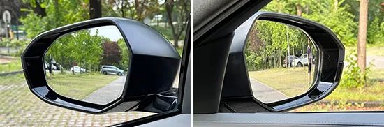 测试车型配备了双曲率镜片且后视镜面积较大,最终的测试结果有一定惊喜。左侧后视镜视野范围角度为30.1°,右侧后视镜视野范围角度为25.2°,左右侧视野均处于同级别上游水平,两侧视野盲区较小。