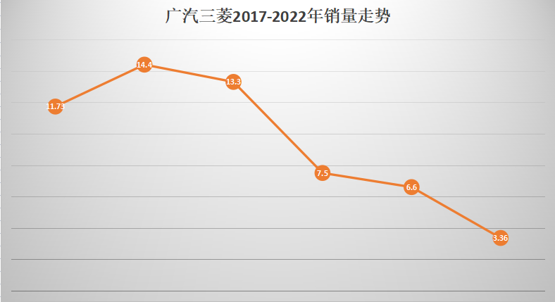 2020年,广汽三菱只卖出去了7.5万辆车,同比下滑43.6%;2021年,广汽三菱的销量进一步下滑,全年只卖出6.6万辆,同比下滑12%;2022年,广汽三菱的销量直接同比腰斩,只有3.36万辆。