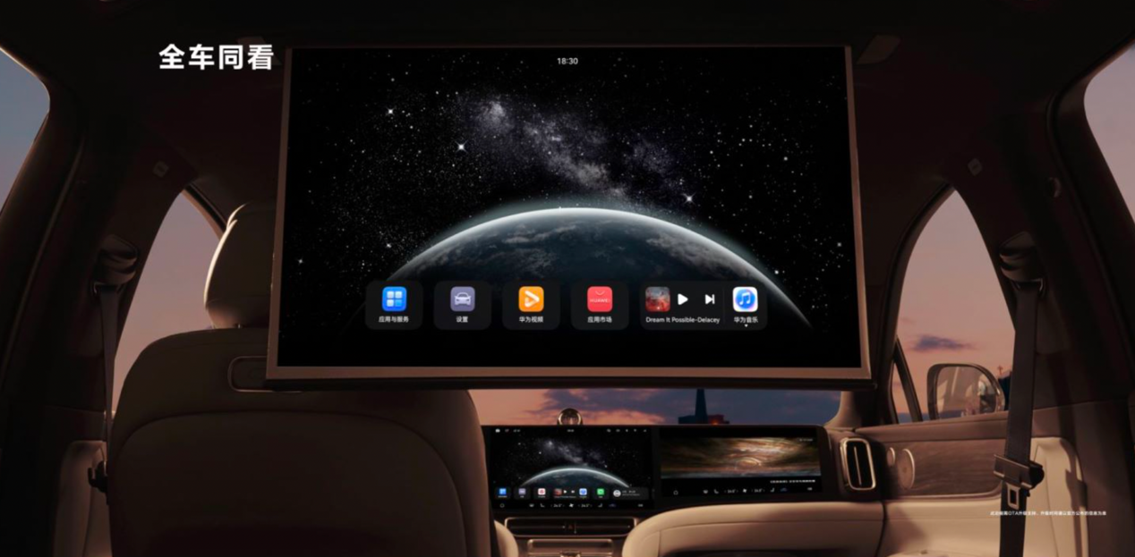 其中业界首款车规级投影系统配合32英寸升降式投影幕布,还通过德国莱茵TUV权威认证和瑞士SGS防晕认证金标,久看不伤眼、久看不晕车。再搭配上全新HUAWEI SOUND卓越系列音响,超感空间音、智慧声场、隐私声盾和智慧甜点位等,音效更震撼,随时随心情秒变专业移动影院,给用户带来好莱坞级沉浸式观影体验,这体验又是妥妥的领先一代。以后老公们都没借口“去死党家里看球赛”,孩子们没有“我去同学家里写作业”了,因为车里啥都有。
