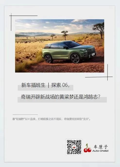但奇瑞并不是要对撼大老虎,是想借“轻越野”为名,开拓一个自己本来没有的品类。