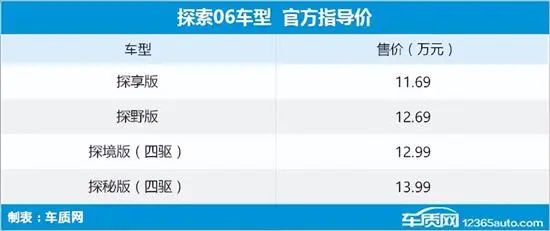 8月20日,奇瑞探索06正式上市,此次共推出4款车型,售价11.69-13.99万元。探索系列是奇瑞汽车继瑞虎、艾瑞泽系列后推出的主打时尚潮流的全新系列,同时探索06也是奇瑞汽车首款轻越野SUV。动力方面,新车初期将提供1.6T+7DCT燃油版,未来还将推出插电式混合动力版本。