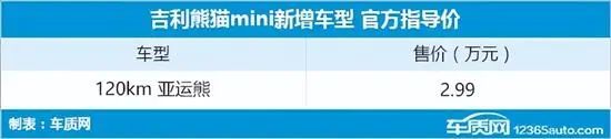 8月18日,车质网从吉利汽车官方获悉,旗下熊猫mini全新车型亚运熊正式上市,售价为2.99万元。据悉,新车将成为熊猫mini系列的入门款车型。