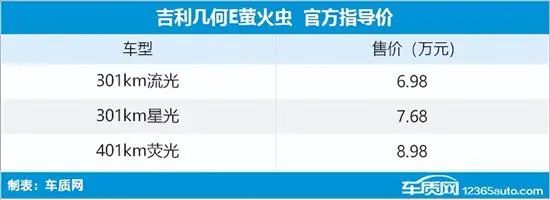 8月16日,吉利几何E萤火虫正式上市,新车推出3款车型,售价区间为6.98-8.98万元。新车针对几何E的外观和内饰以及配置进行全方位升级,续航方面提供301km和401km。