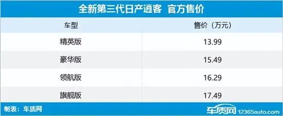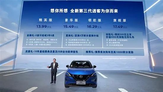 8月16日,全新第三代日产逍客正式上市,本次上市共推出4款车型,售价区间为13.99-17.49万元。在购车政策方面,新车推出了金融礼、置换礼、保险礼、流量礼以及推荐礼等多重购车福利。