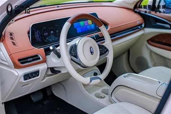 车辆内饰造型同样简洁,双辐式方向盘以及中控台下方的金属拨杆更是烘托出复古气息。中控屏和液晶仪表采用了连体设计,且车机系统功能十分强大,可支持车联网、OTA升级、语音识别以及爱奇艺等第三方APP等。