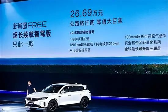 8月19日,新岚图FREE在2023 VOYAH NIGHT岚图用户之夜正式上市,售价26.69万元。新岚图FREE定位“智驾游大五座SUV”,首搭百度Apollo Highway Driving Pro领航辅助智驾;CLTC综合续航里程达到1201km,纯电续航里程210km。