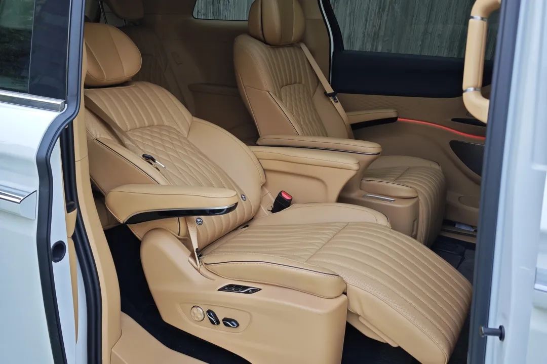 特别是二排电动滑轨的增加,为二排带来了座椅位置记忆、一键舒躺和座椅迎宾等功能。当电动侧滑门缓缓打开,空气悬架缓缓下降,二排座椅缓缓退到最后,为乘客留出最大的上车空间,这正是岚图新梦想家最具豪华感的时刻。