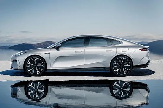 侧面造型与轿跑车相似,采用溜背式设计,同时线条也颇为凌厉。尾部设计相对简洁,细长条造型的LED尾灯视觉效果出色。此外,下包围还采用了造型夸张的扩散器设计,进一步提升运动气息。