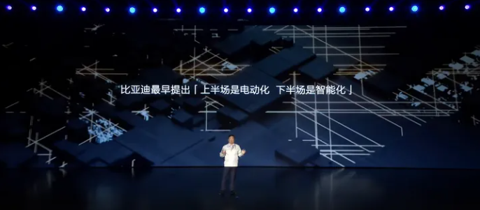 “新能源汽车的上半场是电动化,下半场是智能化”这句话是比亚迪最早提出的,现在也成为了行业共识,引领新能源汽车发展。