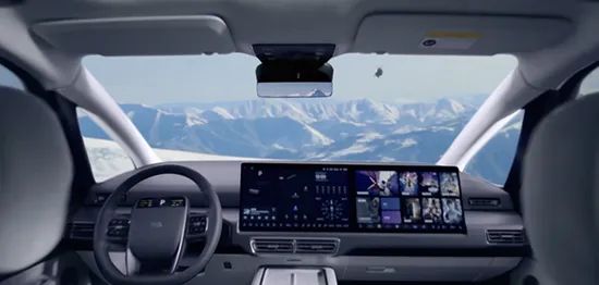 理想MEGA的中控台采用双层式设计,车身两侧加入了大尺寸三角窗,能够进一步优化视野表现。液晶仪表依旧集成在方向盘上,虽然尺寸不大,但显示内容却是相当丰富。双联屏依然还是熟悉的样式,显示内容十分丰富。