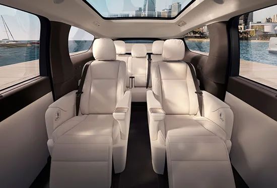 根据官图来看,第二排为独立座椅,座椅带有腿托以及上翘的扶手,座椅调节按键位于扶手内侧,支持多向调节以及加热/通风功能。此外,座椅还能提供零重力模式以及完全躺平模式等。后备厢纵向长度为680mm,第三排座椅不仅可以将靠背向前折叠进而拓展空间,而且也可以向前完全翻起收起。当第三排座椅折叠翻转后,后备厢纵深长度可达1066mm。