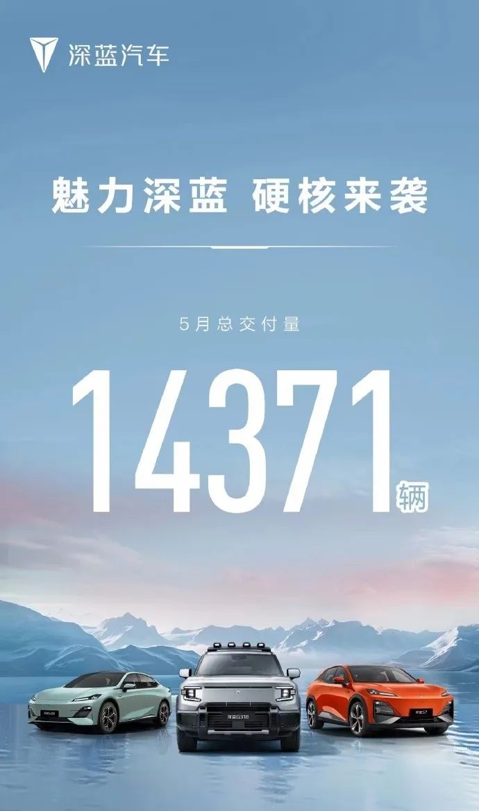 深蓝:5月交付14,371辆,1-5月累计67,199辆