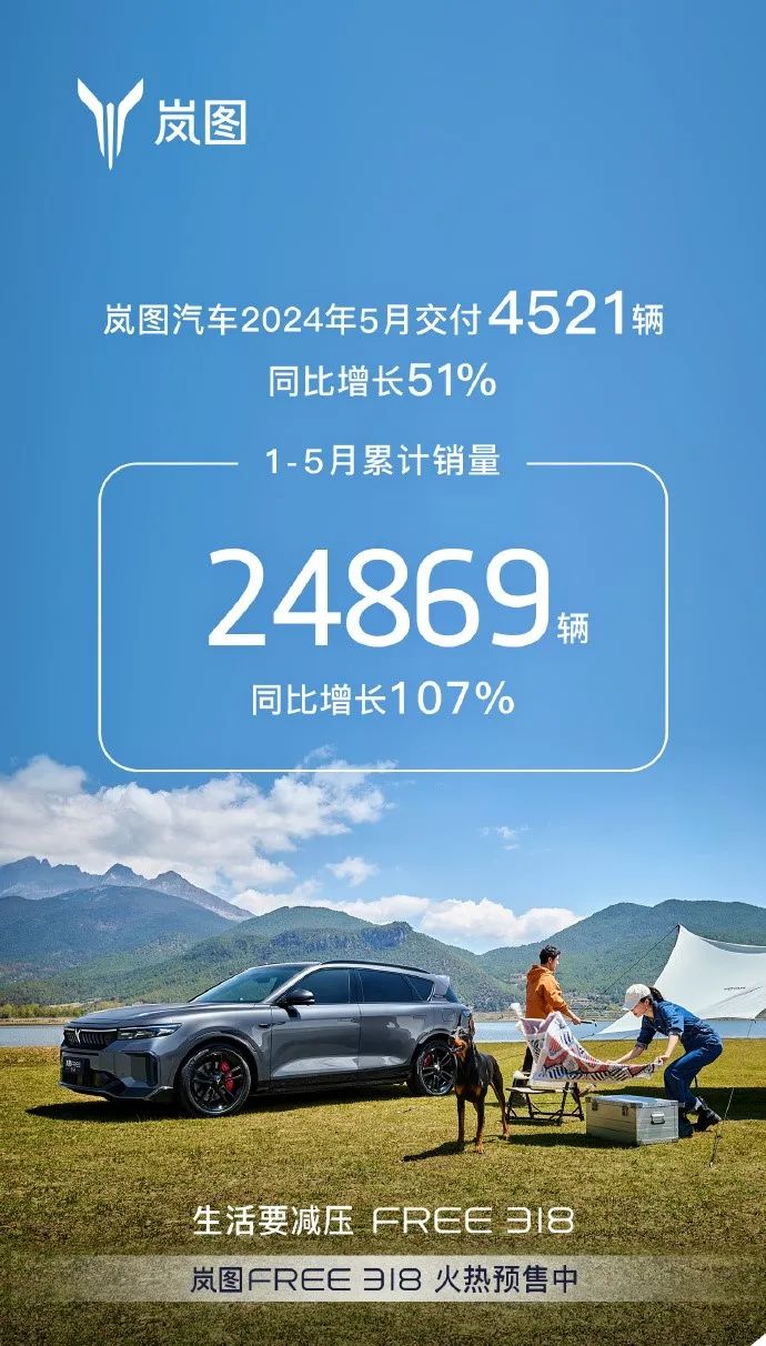 岚图:5月交付4,521辆,1-5月累计24,869辆