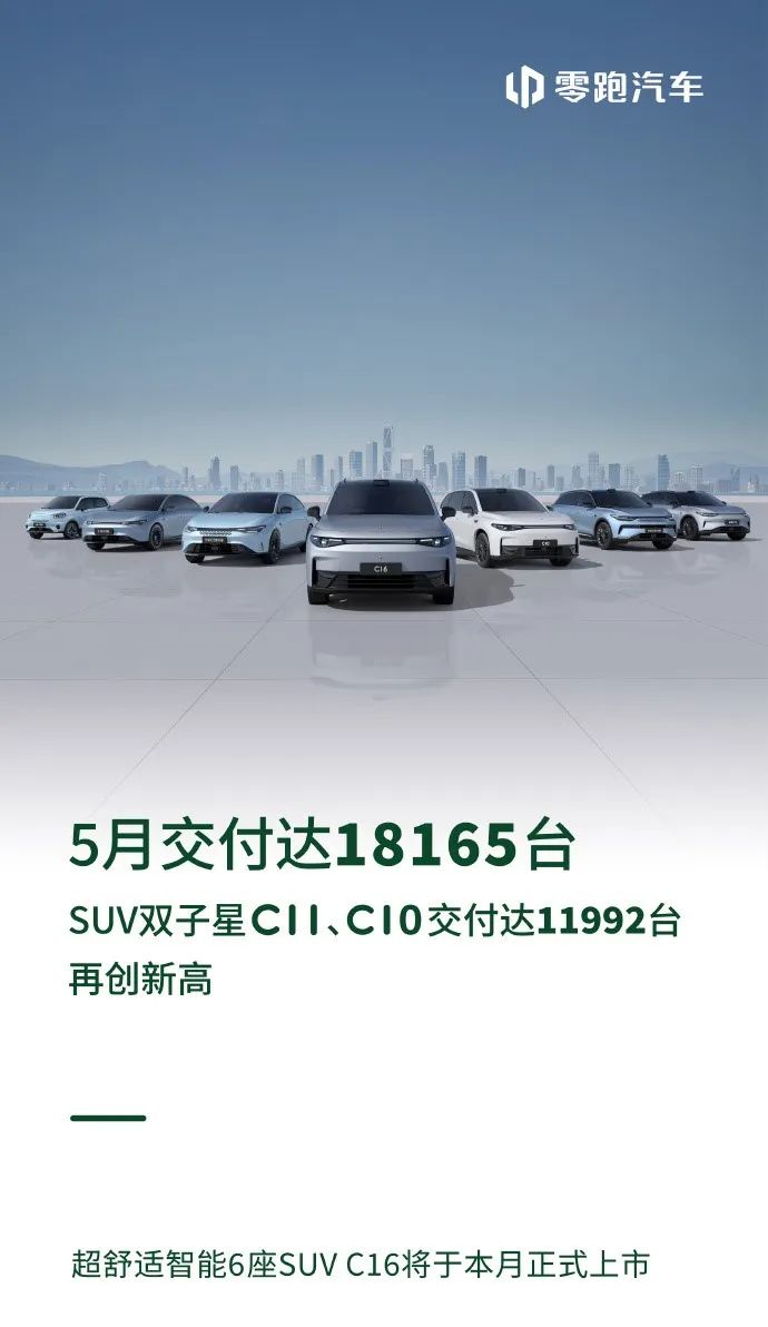 零跑:5月交付18,165辆,1-5月累计66,580辆